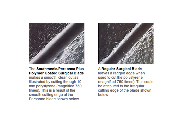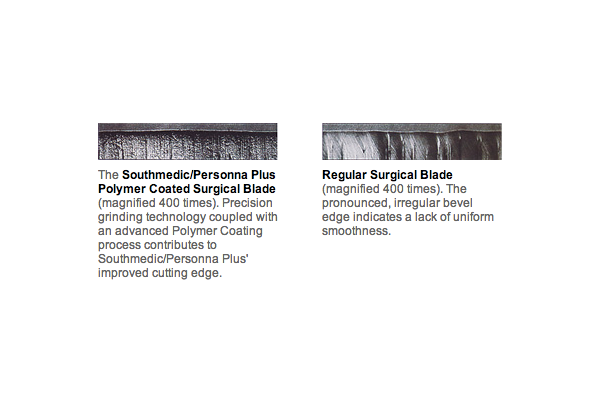 No other blade reduces drag like Southmedic/Personna Plus®. The Polymer Coated edge is designed to glide with smooth, clean precision for less tissue trauma and a faster recovery. It's the kind of difference a surgeon can actually feel. Southmedic/Personna Plus® is technology on the cutting edge.